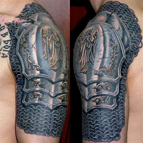 shoulder chain and plate mail tattoo Shoulder armor