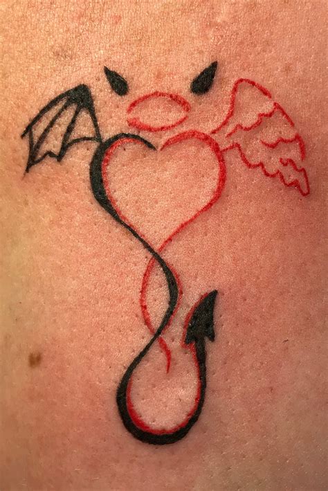 These dagger heart tattoos also represent courage and bravery. Beautiful black and white design and the two symbols come together to promote love. A unique angel tattoo design uses two wings to create the outline of a heart. The devil is the one which portrays the bad actions of which a person is capable of doing, while the angel represents.
