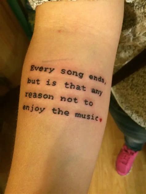See more ideas about lyric tattoos, tattoos, song lyric tattoos. Whether you live for crust punk, wake up to baroque classical, or are only at home listening to dirty south rap, music, in all the various forms it takes, is a universal language that we all love and enjoy on a. Are you looking for an overly subtle and unique.